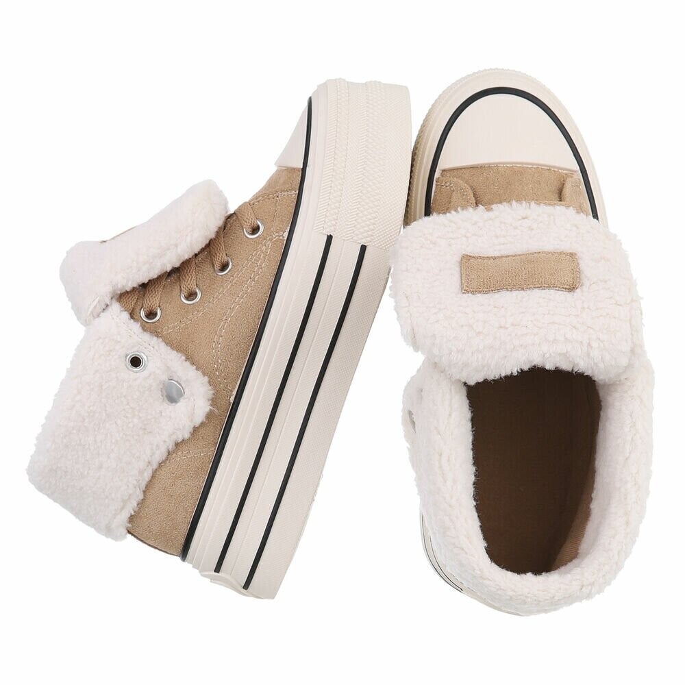Deze suèdine sneaker met zacht vachtdetail is ideaal voor koude dagen. Het verhoogde platform geeft een elegant silhouet en de veters zorgen voor een perfecte pasvorm.