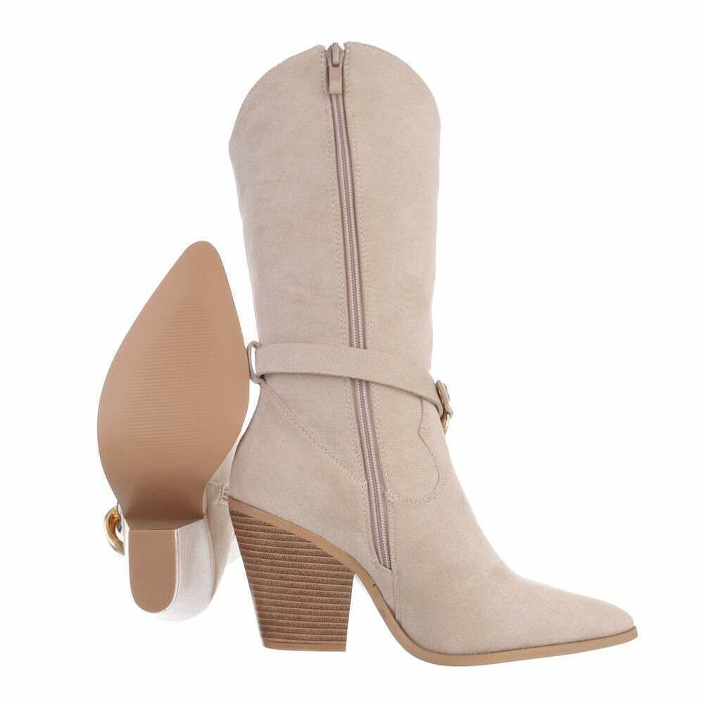 Dit supergave laarsje valt halfhoog en is gemaakt van hoogwaardig suèdine. De spits toelopende neus, de afgeronde schacht aan en de vrouwelijke grove schakelketting rond de enkel zorgen voor een unieke look. De hakhoogte is 8,5 cm en de laarsjes sluiten gemakkelijk door middel van een ritssluiting.